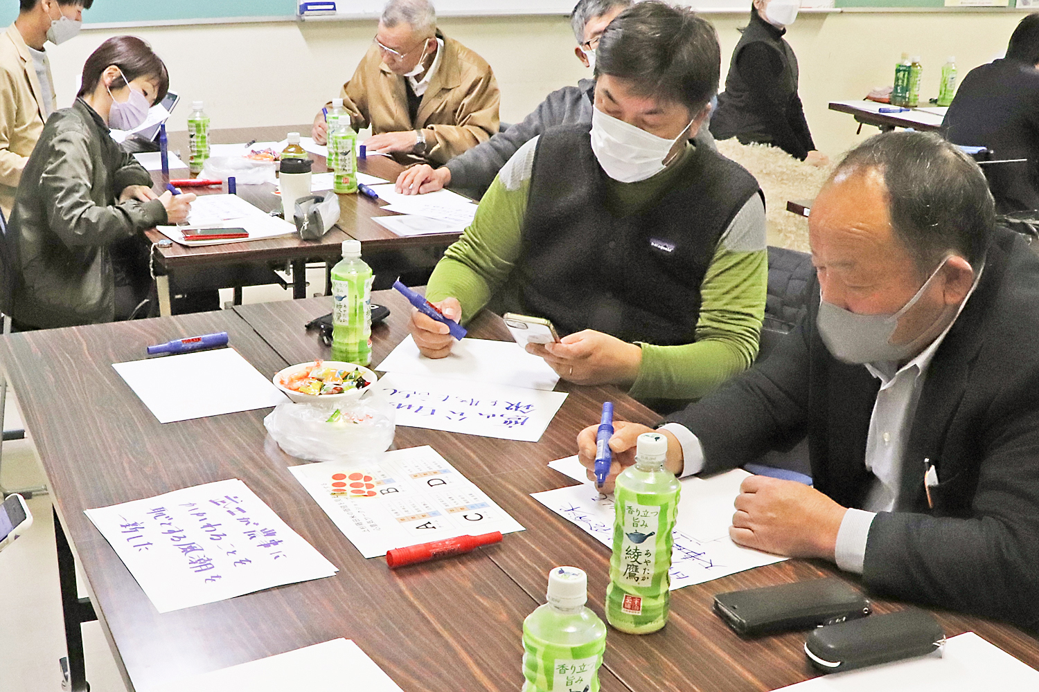 まず始めに「稔りの会にとって大切なことは何か」を考える案出しを各グループに分かれて行いました。そこで「あきらめないで頑張ろう」など共通するテーマが出てきました。きっと皆さんは心の中で、上杉鷹山公の志を重ねながら取り組んでいたのだと思います。